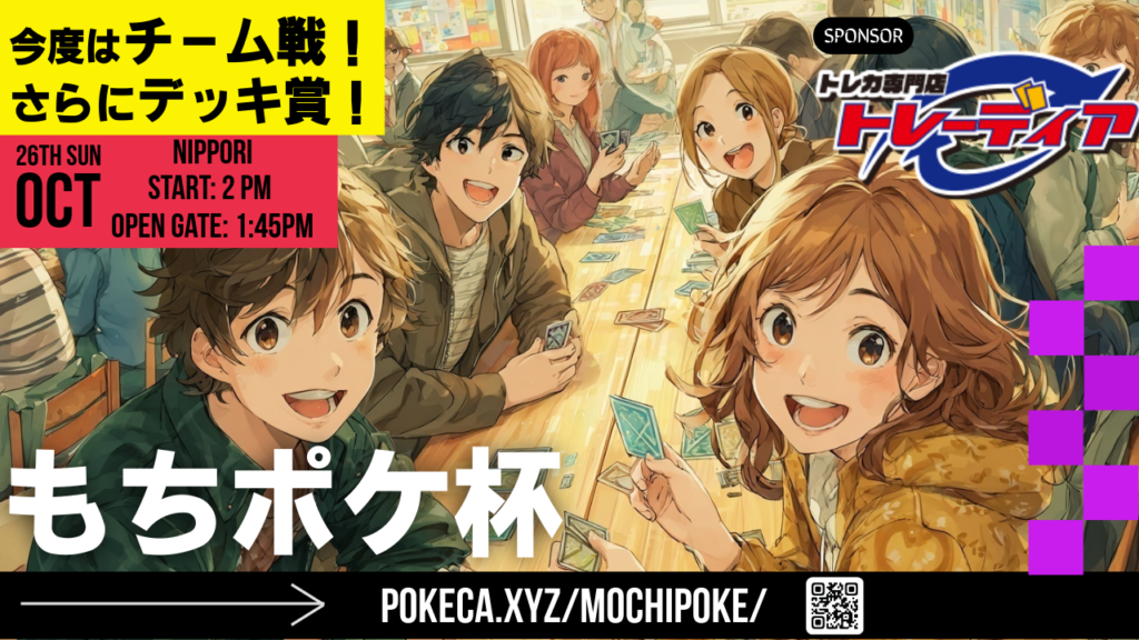 注意賞品受け渡しは、大会後活動が確認できるX(Twitter)で「ハッシュタグ #もちポケ杯」でデッキコードとともに投稿、鍵アカウントなどはせずに今後もポケカの活動を続けていく条件です。